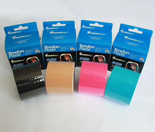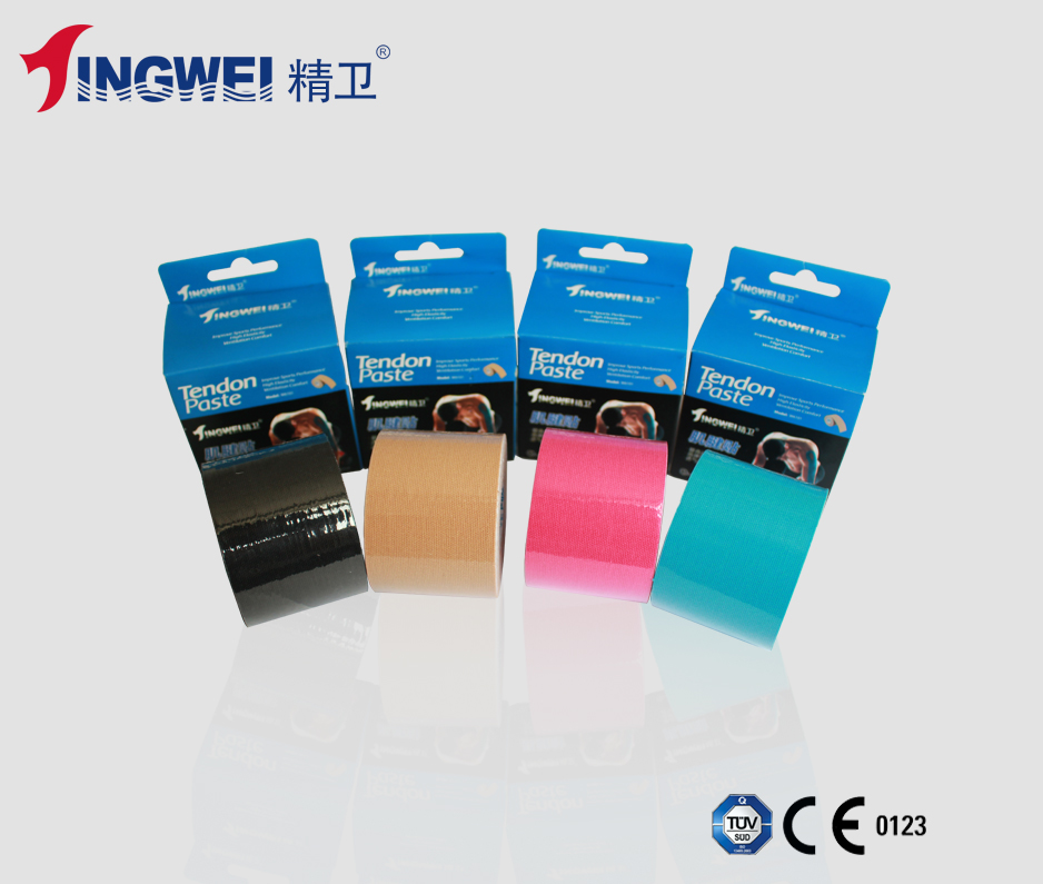 由98%棉和3%氨綸面料組成,涂以丙烯酸膠水波紋狀膠面,成品彈力在1:1.6-1:1.8,具有防水,粘性持久穩(wěn)定,不脫膠不殘膠,背面覆隔離紙。十二色可選,可印刷,可模切。